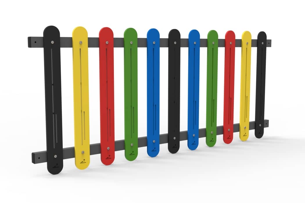 The Coloured Fence is a visually engaging, modular fencing system designed for playgrounds and public spaces. Built from powder-coated iron and aluminium with anti-UV plastic slats, it adds both safety and colour to outdoor environments. Its materials are engineered for durability and minimal maintenance, and it can be securely fixed via anchors or bolts.